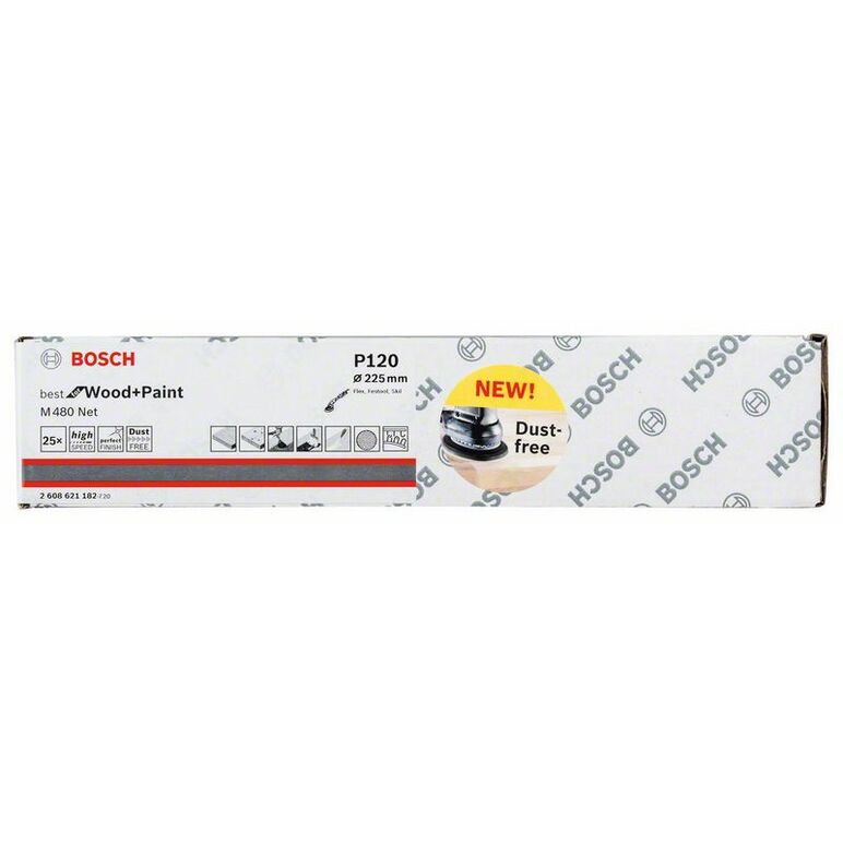 Bosch Schleifblatt M480 Net, Best for Wood and Paint, 225 mm, 120, 25er-Pack (2 608 621 182)