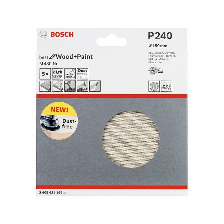 Bosch Schleifblatt M480 Net, Best for Wood and Paint, 150 mm, 240, 5er-Pack (2 608 621 168)