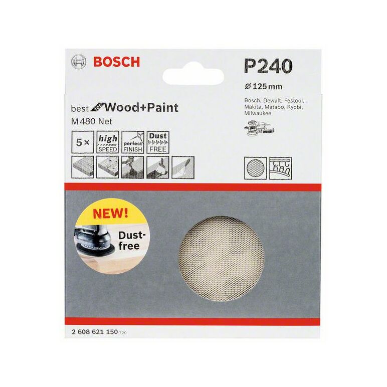 Bosch Schleifblatt M480 Net, Best for Wood and Paint, 125 mm, 240, 5er-Pack (2 608 621 150)