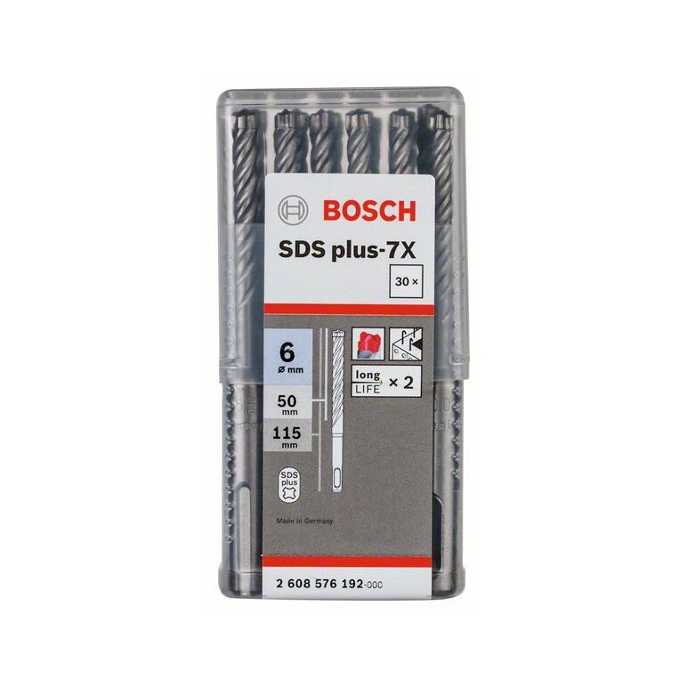 Bosch Hammerbohrer SDS plus-7X, 6 x 50 x 115 mm, 30er-Pack (2 608 576 192)