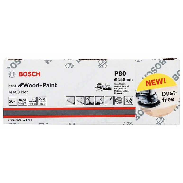 Bosch Schleifblatt M480 Net, Best for Wood and Paint, 150 mm, 80, 50er-Pack (2 608 621 171)