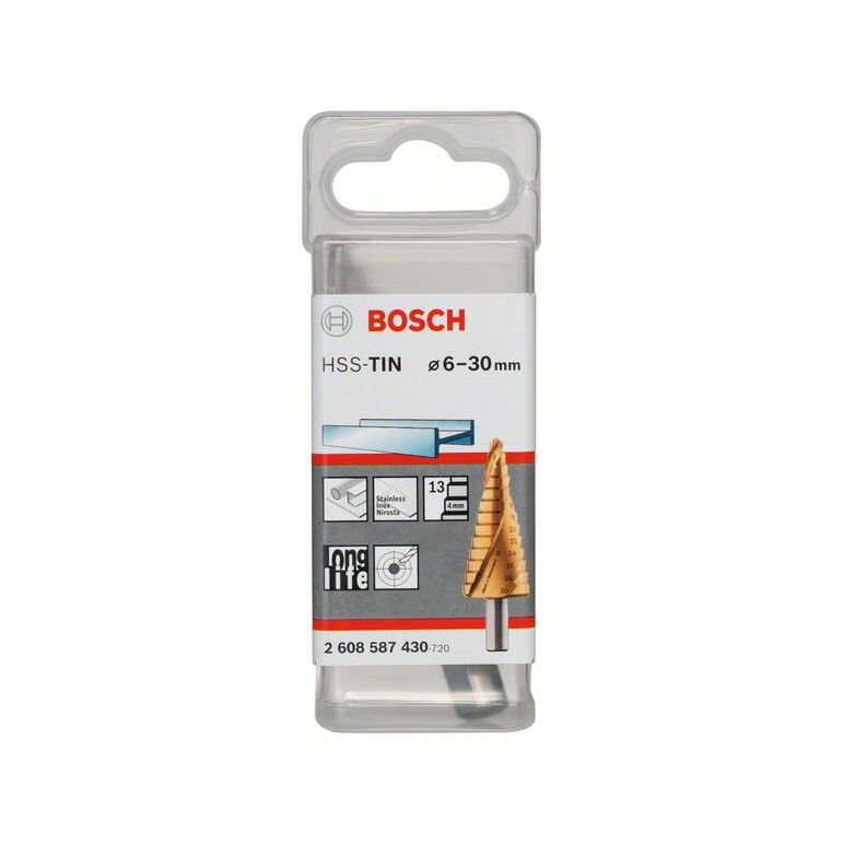 Bosch Stufenbohrer HSS-TiN, 6 - 30 mm, 10 mm, 93,5 mm, 13 Stufen (2 608 587 430)