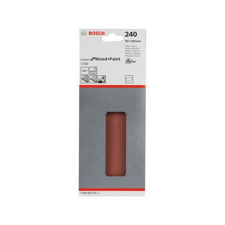 Bosch Schleifblatt C430, 93 x 230 mm, 240, ungelocht, gespannt, 10er-Pack (2 608 605 315)