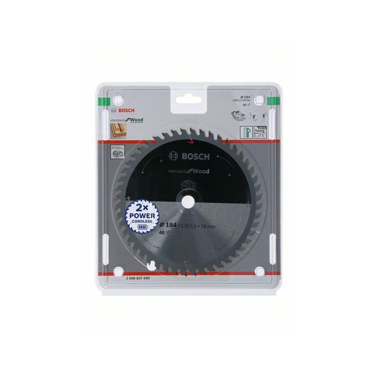 Bosch - Kreissägeblatt Standard for Wood, 184 x 1,6/1,1 x 16, 48 Zähne - 2608837699