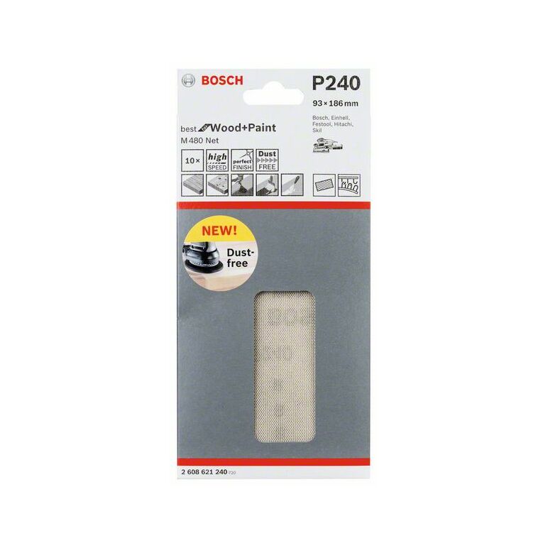 Bosch Schleifblatt M480 Net, Best for Wood and Paint, 93 x 186 mm, 240, 10er-Pack (2 608 621 240)