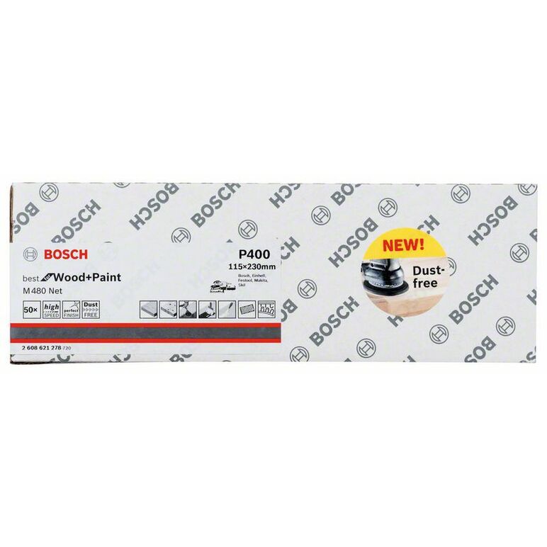 Bosch Schleifblatt M480 Net, Best for Wood and Paint, 115 x 230 mm, 400, 50er-Pack (2 608 621 278)