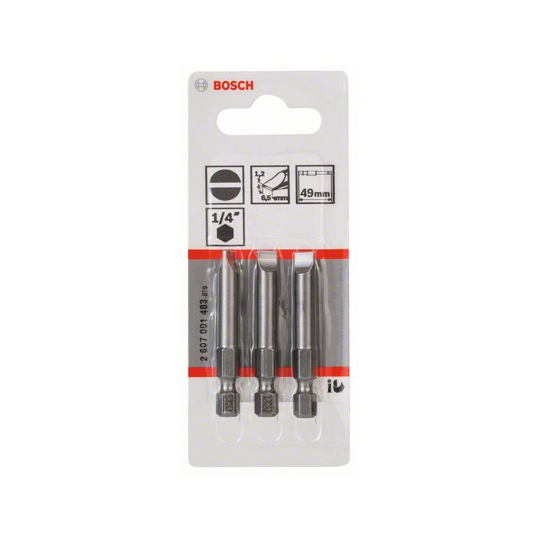 Bosch Schrauberbit Extra-Hart S 1,2 x 6,5, 49 mm, 3er-Pack (2 607 001 483)