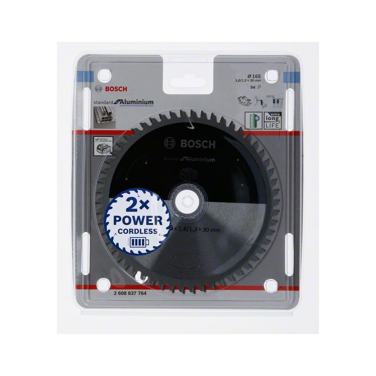 Bosch Akku-Kreissägeblatt Standard for Aluminium, 165 x 1,8/1,3 x 30, 54 Zähne (2 608 837 764)