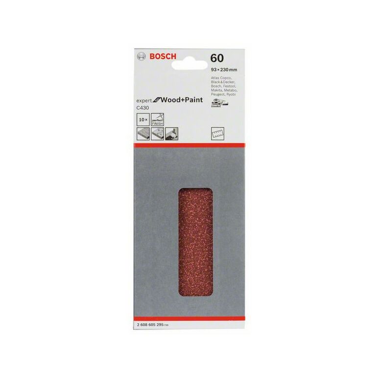 Bosch Schleifblatt C430, 93 x 230 mm, 60, 8 Löcher, gespannt, 10er-Pack (2 608 605 295)