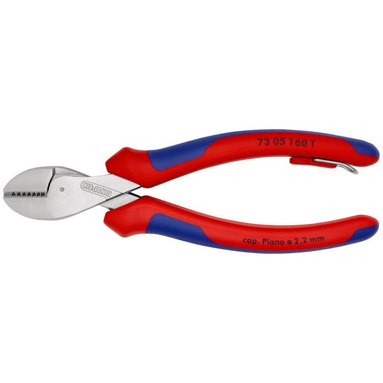 schneidet präzise feinste Drähte ebenso wie mehrdrähtige Kabel und harten Pianodraht. Kraftvoll, leicht und universell. Hohe Schneidleistung bei geringem Kraftaufwand durch optimale Abstimmung von Schneidenwinkel und Übersetzungsverhältnis. Durchgestecktes Gelenk: höchste Stabilität bei niedrigem Gewicht. Doppelt gelagerte Gelenkachse für harte, dauerhafte Beanspruchung. Große Öffnungsweite für dickere Kabel. Präziser Schnitt auch bei feinen Cu-Drähten. Kompakte, gewichtssparende Bauweise. Universell einsetzbar, in Montage, Instandhaltung und Produktion. 40 % Kraftersparnis im Vergleich zu Standard-Seitenschneidern gleicher Länge. Zange mit Befestigungsöse zum Anbringen einer Absturzsicherung.