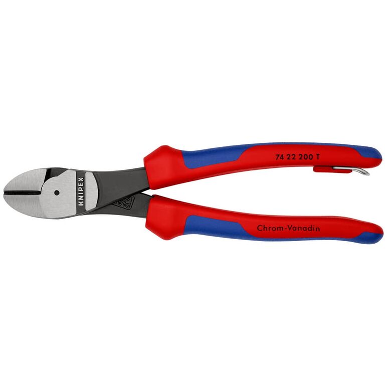 Für härteste, dauerhafte Beanspruchung. Hohe Schneidleistung bei geringem Kraftaufwand durch optimale Abstimmung von Schneidenwinkel und Übersetzungsverhältnis. Präzisionsschneiden zusätzlich induktiv gehärtet, (Schneidenhärte ca. 64 HRC) für alle Drahtsorten einschließlich Pianodraht. Zange mit Befestigungsöse zum Anbringen einer Absturzsicherung. 12° gewinkelter Kopf bietet Freiraum zum Greifen.