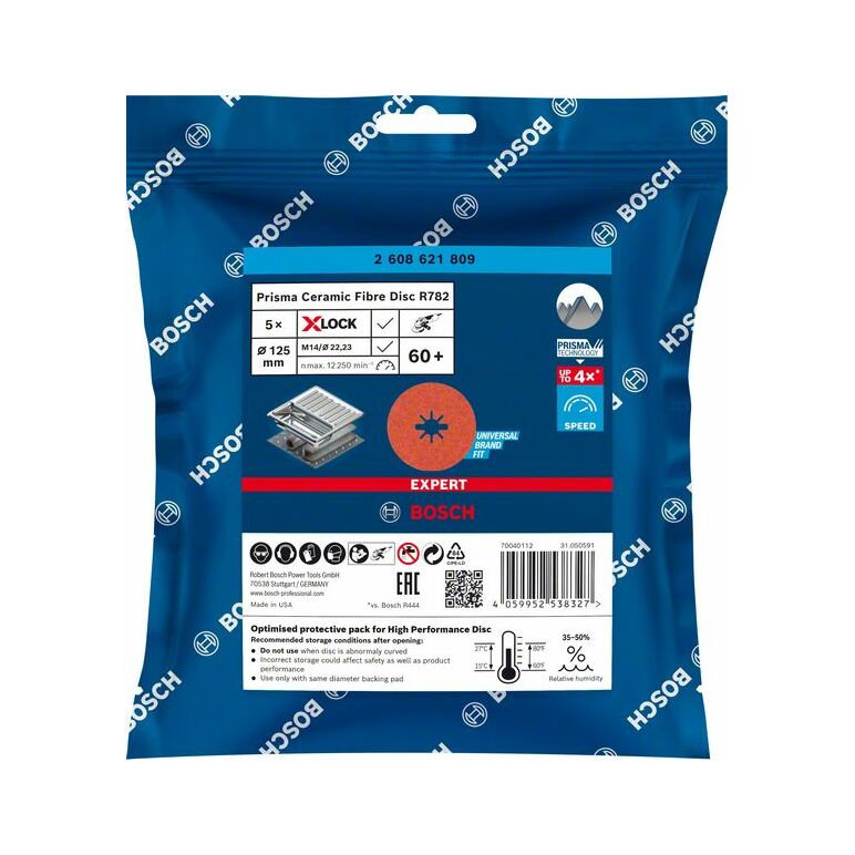 Bosch - Professional Expert R782 Prisma Ceramic Fiberscheibe, x-lock, 125 mm, 22,23 mm, g 60, 5-tlg. (2608621809)