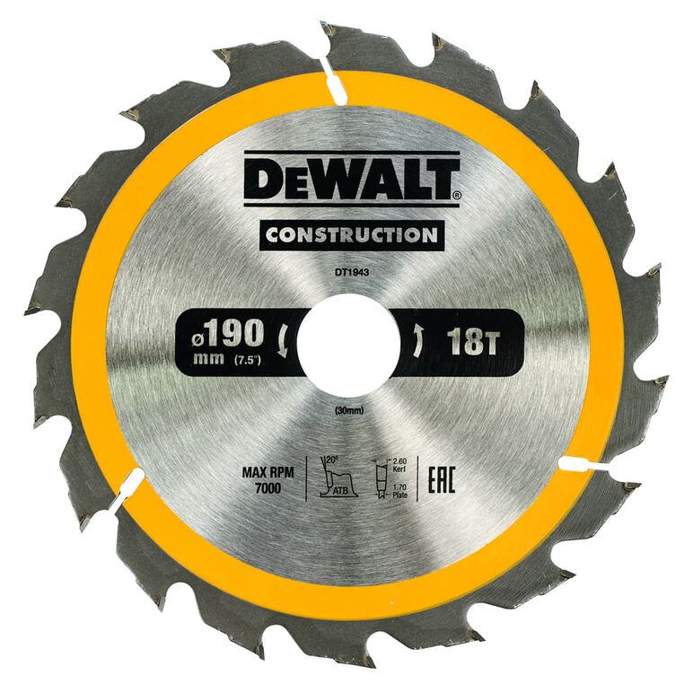 DeWalt DT1943 Kreissaegeblatt Handkr. 190/30mm 18WZ