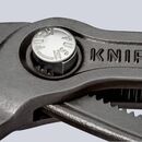 Einstellung per Knopfdruck direkt am Werkstück. Feinverstellung für optimale Anpassung an verschiedene Werkstückgrößen und handfreundliche Griffstellung. Selbstklemmend an Rohren und Muttern: kein Abrutschen am Werkstück, kraftsparendes Arbeiten. Greifflächen mit spezialgehärteten Zähnen, Härte der Zähne ca. 61 HRC: dauerhaft sicheres Greifen durch hohe Verschleißfestigkeit. Durchgestecktes Gelenk: hohe Stabilität durch doppelte Führung. Sicheres Einrasten des Gelenkbolzens: keine unbeabsichtigte Verstellung. Klemmschutz verhindert Quetschverletzungen. Zange mit Befestigungsöse zum Anbringen einer Absturzsicherung.