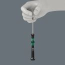 Hochwertiger Wera Micro Schraubendreher für feinmechanische Verschraubungen. Mit praktischer Haltefunktion: Durch die aus der Flächenpressung zwischen der Abtriebsspitze und Schraubenprofil resultierende Klemmkraft werden die Schrauben sicher auf dem Werkzeug gehalten. Durch Abstützen der Hand auf der Drehkappe und durch die Schnelldrehzone unterhalb der Drehkappe ist blitzschnelles Zwirbeln möglich. Zeitintensives Umgreifen entfällt. Kraftzone mit integrierten Weichzonen sorgt für die Übertragung hoher Löse- und Anzugsmomente. Präzisionszone für den richtigen Drehwinkel bei Justierarbeiten. Die Wera Black Point-Spitze bietet Passgenauigkeit und optimierten Korrosionsschutz. Take it easy Werkzeugfinder mit Farbkennzeichnung nach Profilen und Größenstempelung - zum einfachen und schnellen Finden des benötigten Werkzeugs.