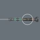 Hochwertiger Wera Micro Schraubendreher für feinmechanische Verschraubungen. Mit praktischer Haltefunktion: Durch die aus der Flächenpressung zwischen der Abtriebsspitze und Schraubenprofil resultierende Klemmkraft werden die Schrauben sicher auf dem Werkzeug gehalten. Durch Abstützen der Hand auf der Drehkappe und durch die Schnelldrehzone unterhalb der Drehkappe ist blitzschnelles Zwirbeln möglich. Zeitintensives Umgreifen entfällt. Kraftzone mit integrierten Weichzonen sorgt für die Übertragung hoher Löse- und Anzugsmomente. Präzisionszone für den richtigen Drehwinkel bei Justierarbeiten. Die Wera Black Point-Spitze bietet Passgenauigkeit und optimierten Korrosionsschutz. Take it easy Werkzeugfinder mit Farbkennzeichnung nach Profilen und Größenstempelung - zum einfachen und schnellen Finden des benötigten Werkzeugs.
