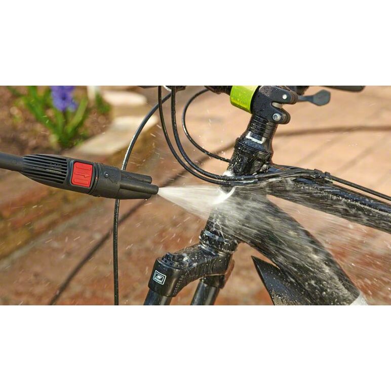 Systemzubehör 3-in-1-Düse. Wechsel durch Drehbewegung sorgt für ein einfaches Umschalten zwischen Spritzmustern. Einfaches Umschalten zwischen drei Spritzmustern, um den Strahl an die jeweilige Reinigungsaufgabe anzupassen. Niederdruck-Reinigungsmittel für die Verwendung mit dem Saugroh. Schneller Drehstrahl entfernt starke Verschmutzungen. Fester Fächerstrahl ist perfekt zum Abbrausen. Geeignet für: AQT 33-10, AQT 35-13, AQT 37-13.