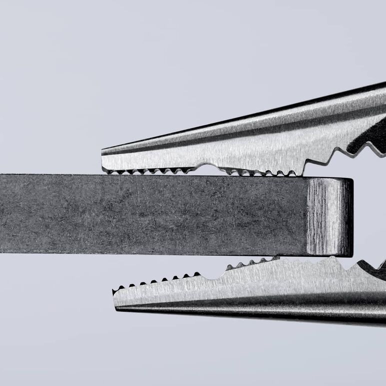 Kleine Kraft-Kombizange mit spitzem Maul.. Für alle gängigen Installations- und Reparaturarbeiten.. besonders handlich: ideal zum Arbeiten in schwer zugänglichen Arbeitsbereichen dank schlanker Kopfform mit spitz zulaufenden Backen (sehr verdrehsicher). Greiffläche einseitig konvex - zum sicheren Greifen flacher Teile. gefräste Nut im Greifbereich ermöglicht das sichere Halten und Ziehen kleiner Werkstücke wie Nägel, Stifte und Bolzen. Die zuverlässige und vielseitige Spitz-Kombizange für unterwegs. Leichtes Schneiden dank hochübersetztem Kraftgelenk. Mit Schneiden für weichen, mittelharten und harten Draht. Schneiden zusätzlich induktiv gehärtet, Schneidenhärte ca. 61 HRC. Lange Haltbarkeit und stabile Spitzen.