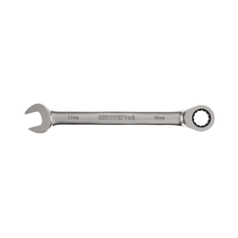 LIEFERUMFANG: 1 x GEDORE red Ringratschenmaulschlüssel, Schlüsselweite: 14 mm, Länge: 193 mm, Gewicht: 110 g, Artikelnummer: R07100140