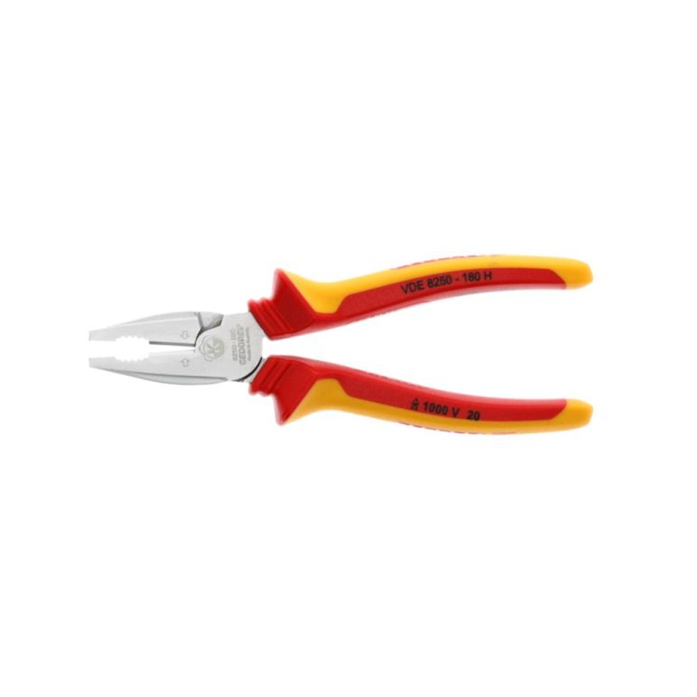 LIEFERUMFANG: 1 x GEDORE VDE-Kraft-Kombinationszange mit Hüllenisolierung, Länge: 180 mm, Gewicht: 288 g, Artikelnummer: VDE 8250-180 H