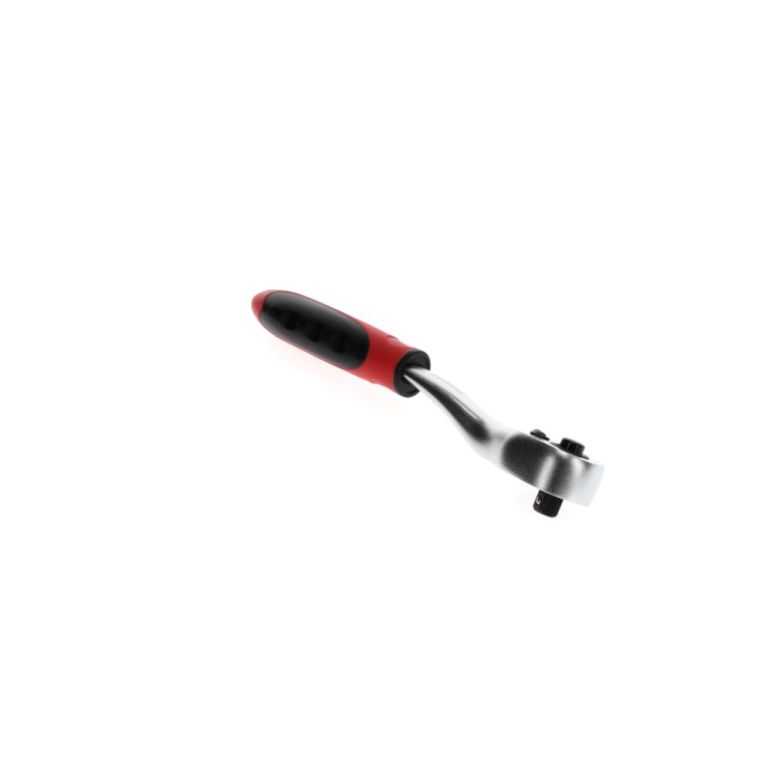 Gekröpfte Ausführung für tiefliegende Schraubfälle, Rechts-/Linkslauf durch Hebel umschaltbar, Grobverzahnt mit 36 Zähnen, Rückschwenkwinkel von 10°