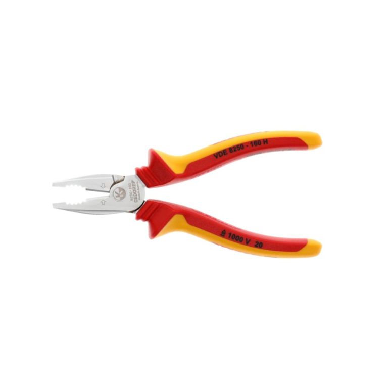 LIEFERUMFANG: 1 x GEDORE VDE-Kraft-Kombinationszange mit Hüllenisolierung, Länge: 160 mm, Gewicht: 228 g, Artikelnummer: VDE 8250-160 H