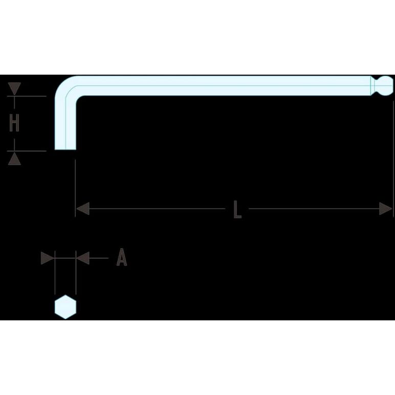 Winkel-Stiftschlüssel | einseitig mit Kugelkopf | extra lang | Abtriebe Innensechskant 4 mm