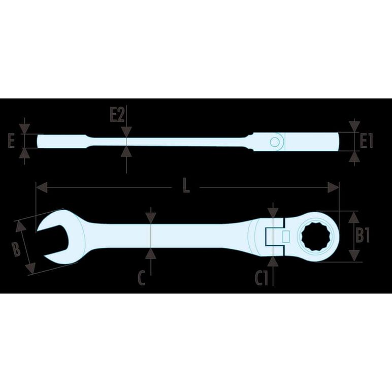 Knarrengabelringschlüssel | Ringkopf mit Gelenk, 180° schwenkbar | Gabelkopf 15° abgeschrägt | SW 5/16"