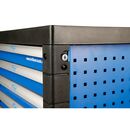 Mehr Platz! Der Profi Werkstattwagen hat sieben Schubladen. Zwei Schubladen sind besonders hoch und bieten somit auch für Bohrmaschinen und anderen großen Werkzeugen ausreichend Platz. Durch die seitliche Schlüssellochung kann mit den richtigen Halterungen zusätzlicher Stauraum geschaffen werden. Alle Schubladen sind Kugelgelagert und auch bei voller Beladung von 35 kg maximale 100% ausziehbar. Das Erreichen der Werkzeuge ist also absolut Problemlos möglich. Damit Ihr Profi Werkstattwagen nicht umkippt sind alle Schubladen einzeln verriegelt und können noch durch das Zentralschloss gesichert werden.