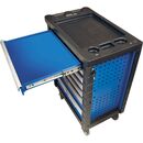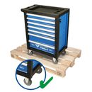 Der hochwertig pulverbeschichtete Profi-Werkstattwagen ist immer dort, wo er gerade gebraucht wird! Lästiges hin und her laufen gehört der Vergangenheit an. Mithilfe der ergonomischen in die Kunststoffablage integrierten Schiebegriffe lässt er sich ziemlich leicht durch die Werkstatt manövrieren und dabei schützt der Kantenschutz an den Ecken bei Kollisionen. Dank seiner 2 Feststellbremsen, an den Lenkrollen, bleibt er sicher am Zielort stehen. Mehr Platz! Der Werkstattwagen hat sieben Schubladen. Zwei Schubladen sind besonders hoch und bieten somit auch für Bohrmaschinen und anderen großen Werkzeugen ausreichend Platz. Durch die seitliche Schlüssellochung kann mit den richtigen Halterungen zusätzlicher Stauraum geschaffen werden. Alle Schubladen sind kugelgelagert und auch bei voller Beladung von 35 kg maximale 100% ausziehbar. Das Erreichen der Werkzeuge ist also absolut problemlos möglich. Damit Ihr Profi Werkstattwagen nicht umkippt sind alle Schubladen einzeln verriegelt und können noch durch das Zentralschloss gesichert werden.