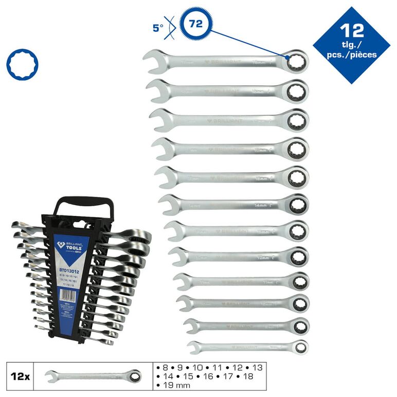 Brilliant Tools Ratschenringschlüssel, 12-tlg (BT013012)