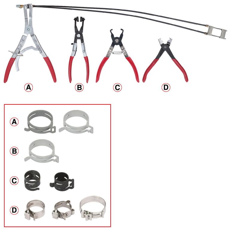 Einsatzbereich: Zum Öffnen und Schließen von Kraftstoff-, Tauchbelüftungs-, Kühl- und Waschwasser- sowie Unterdruckschläuchen etc.