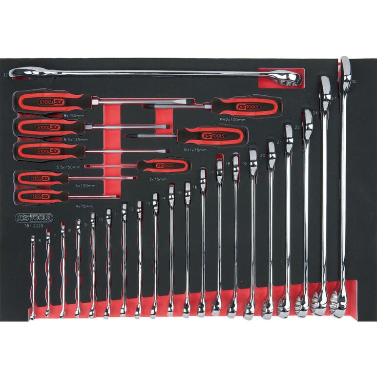 KS Tools 781.2029 SCS CHROMEplus Ringmaulschlüssel-Satz, 29-tlg. in 1/1 Systemeinlage