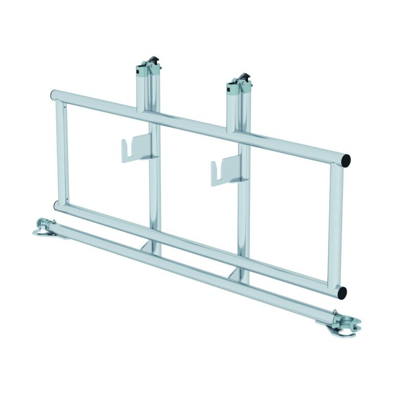 Klappbare Zusatzrahmen als Montagesicherungsgeländer für die jeweilige Gerüstlänge von 1,80 m, 2,45 m und 3,00 m die das Absturzrisiko deutlich mindern