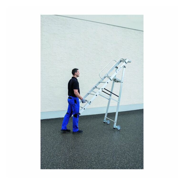 Aluminium-Stehleiter mit Rollen und Griff 10 Stufen Arbeitshöhe bis ca. 4,35 m