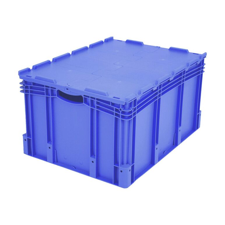 BITO 43-22561 Eurostapelbehälter XL mit Anscharniertem Zweiteiligem Klappdeckel, 800 mm x 600 mm x 438 mm, 60 kg Inhaltsbelastung, Blau