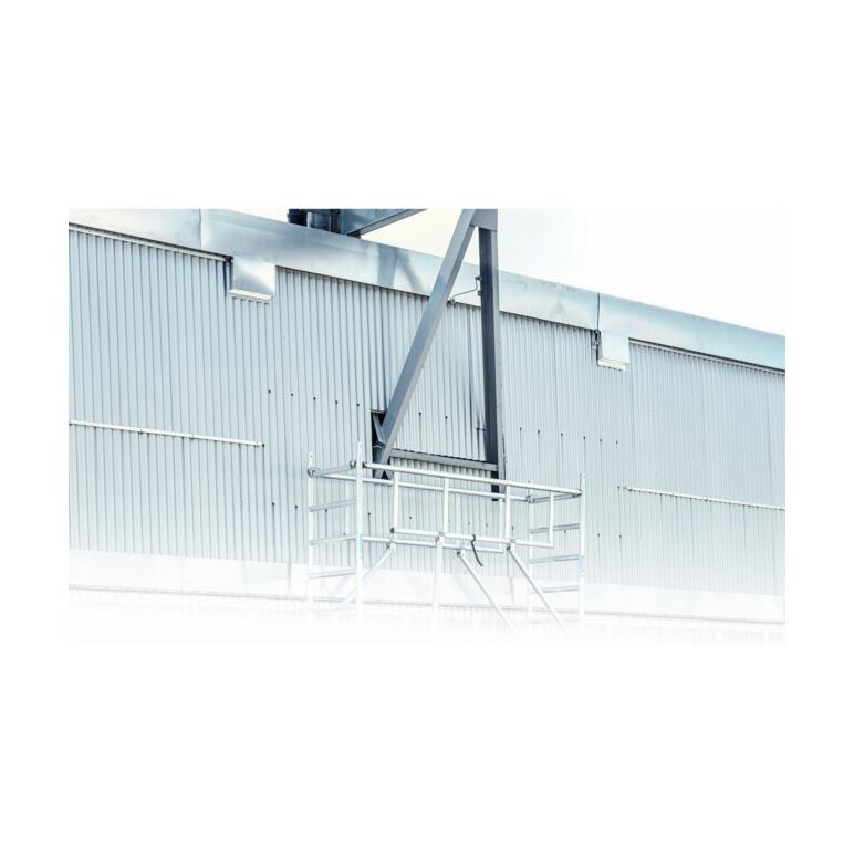 - Sicherer und schnellerer Auf- und Abbau durch vorlaufendes Geländer (anstelle Geländer und Diagonalstreben) und Plattformen im 2 m-Abstand