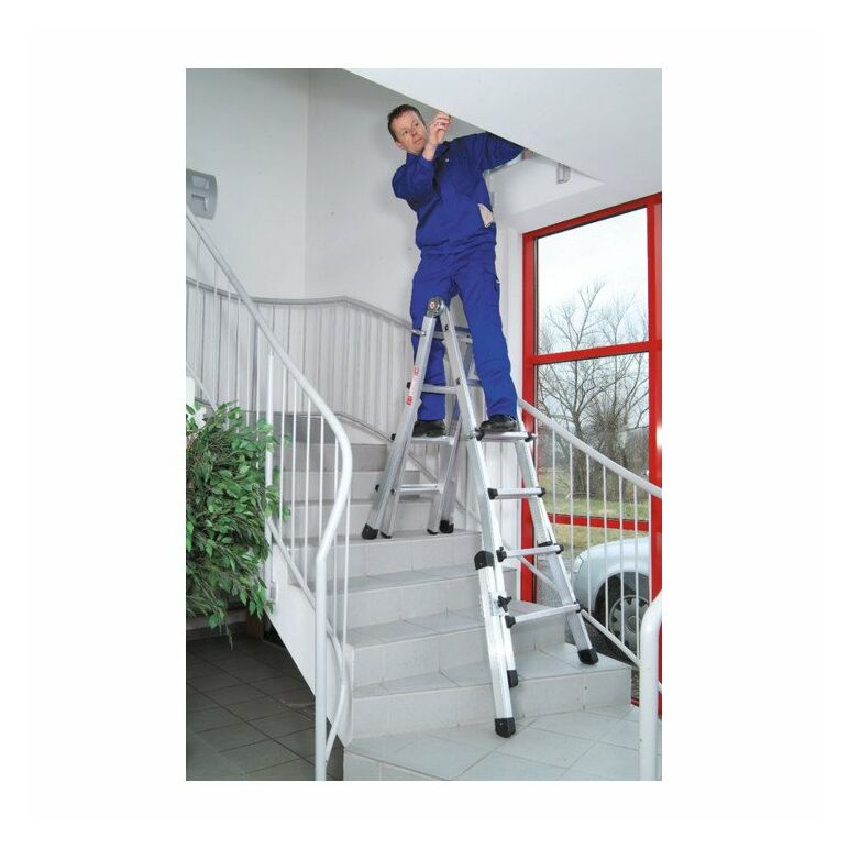 - Von Sprosse zu Sprosse bis fast auf doppelte Höhe ausziehbar