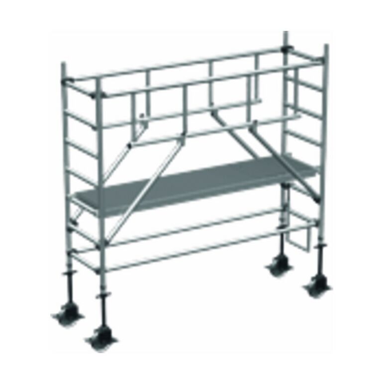 Die fahrbare Gerüstlösung für sicheren und schnellen Aufbau durch vorlaufendes Geländer. zwei Meter Plattformabstand und weniger Einzelteile.