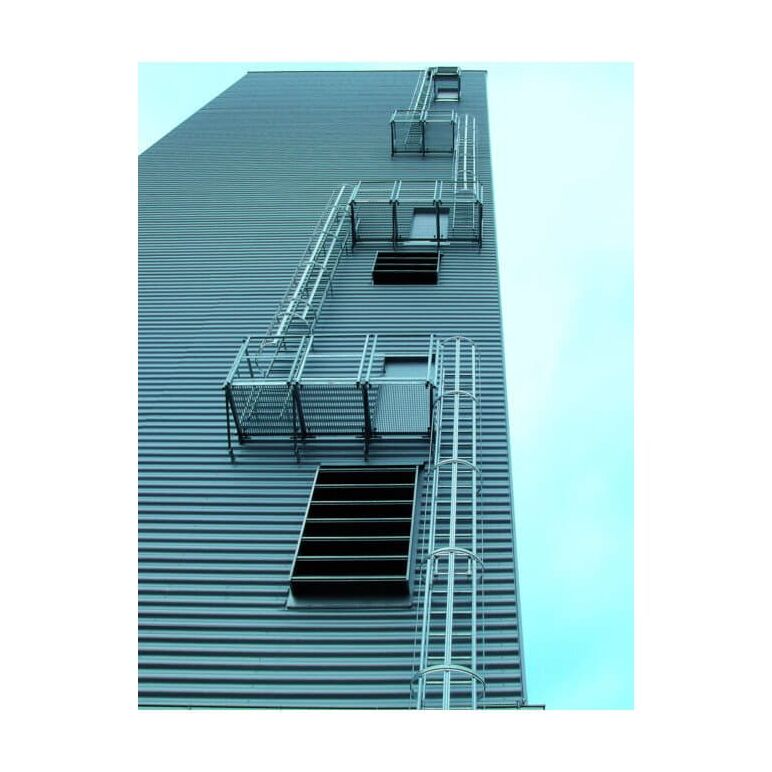 Mehrzügige Steigleiter mit Rückenschutz (Bau) Edelstahl
