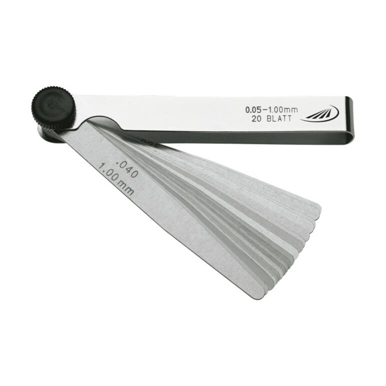 • Fühlerlehre, bestehend aus 8 konisch geformten Fühlerlehrenblättern