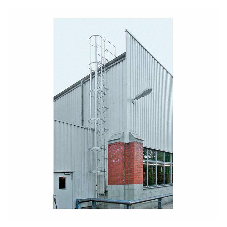 Mehrzügige Steigleiter mit Rückenschutz (Bau) Edelstahl