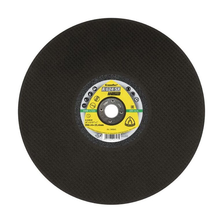 Klingpsor 351433 A 624 SX Supra Kronenflex Großtrennscheiben für Stahl, Gerade, 356mm x 4mm x 22.23mm, 10 Stück