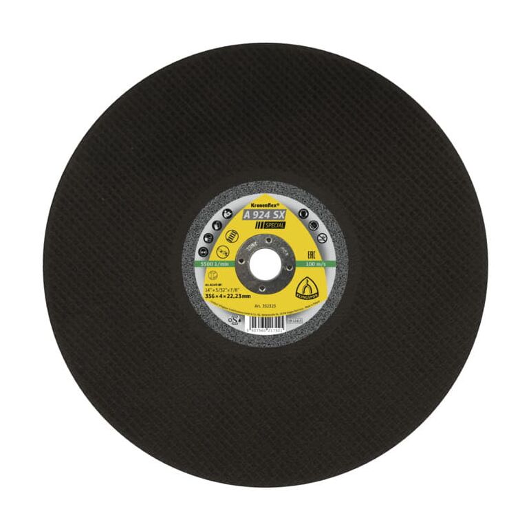 - Für den Einsatz auf Benzin-Trennmaschinen mit einer Schnittgeschwindigkeit von 100 m/s und Spannvorrichtung