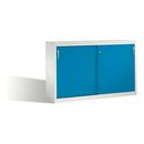 C+P Akten-Sideboard Acurado mit Schiebetüren, 2 x 2 Ordnerhöhen, H1000xB1600xT500mm Front Lichtblau Korpus Lichtgrau