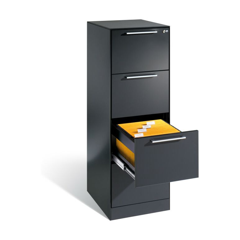 - 1x C+P Hängeregistraturschrank Asisto für Hängehefter DIN A4, 4 Schübe, einbahnig, Schwarzgrau