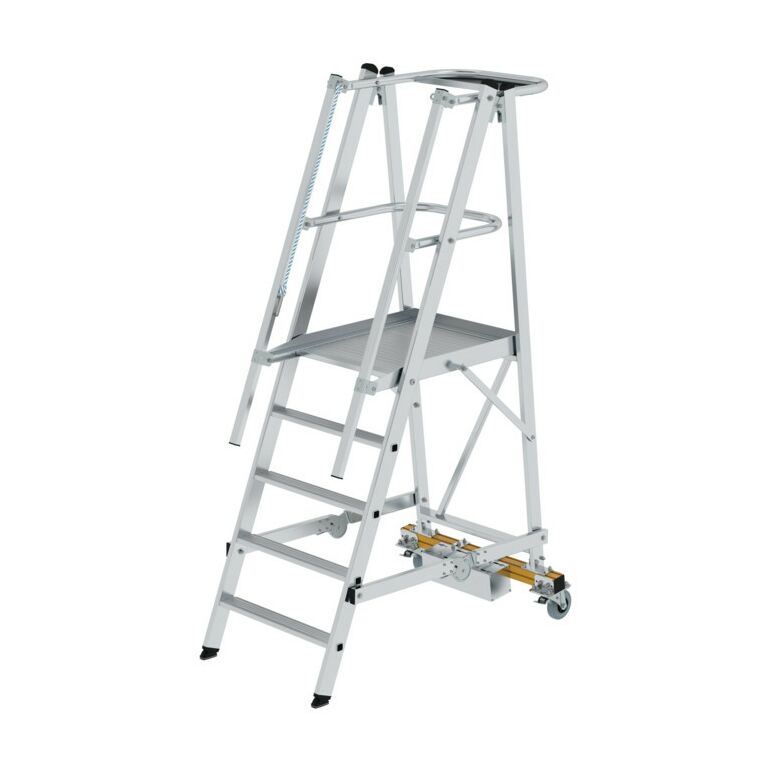 - Mit beidseitigem Handlauf, 3-seitigem Geländer sowie Knie- und Fußleisten für ein sicheres Begehen und Stehen