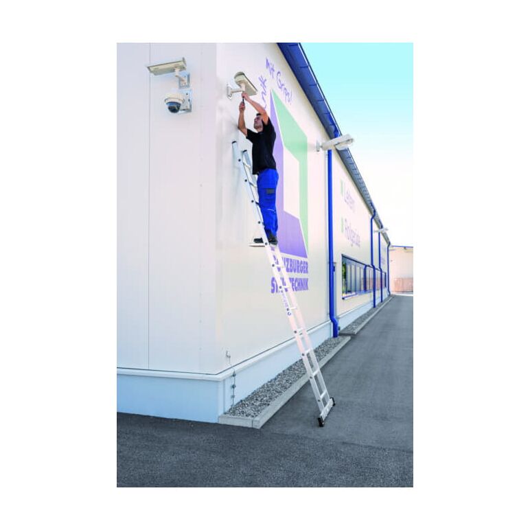 - Standard-Traverse mit rutschsicheren Leiterschuhen in optimaler Breite zum gewählten Produkt für einen sicheren Stand und Aufstieg bei Anlegeleitern über 3,0 m. Die Traverse liegt lose bei und wird zweifach am unteren Holmende verschraubt