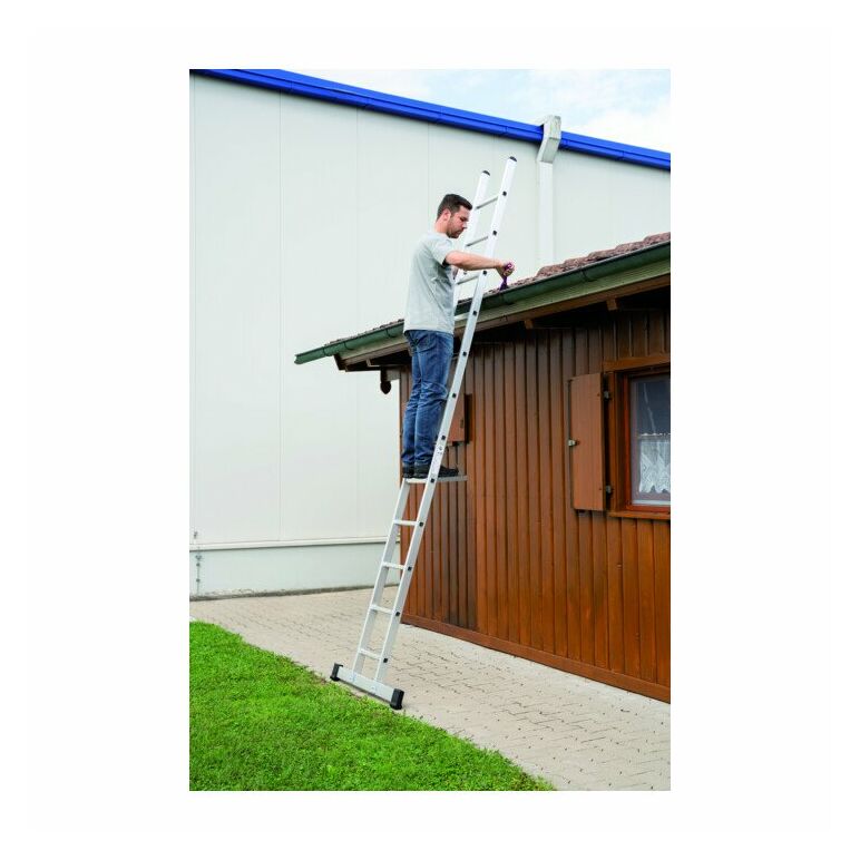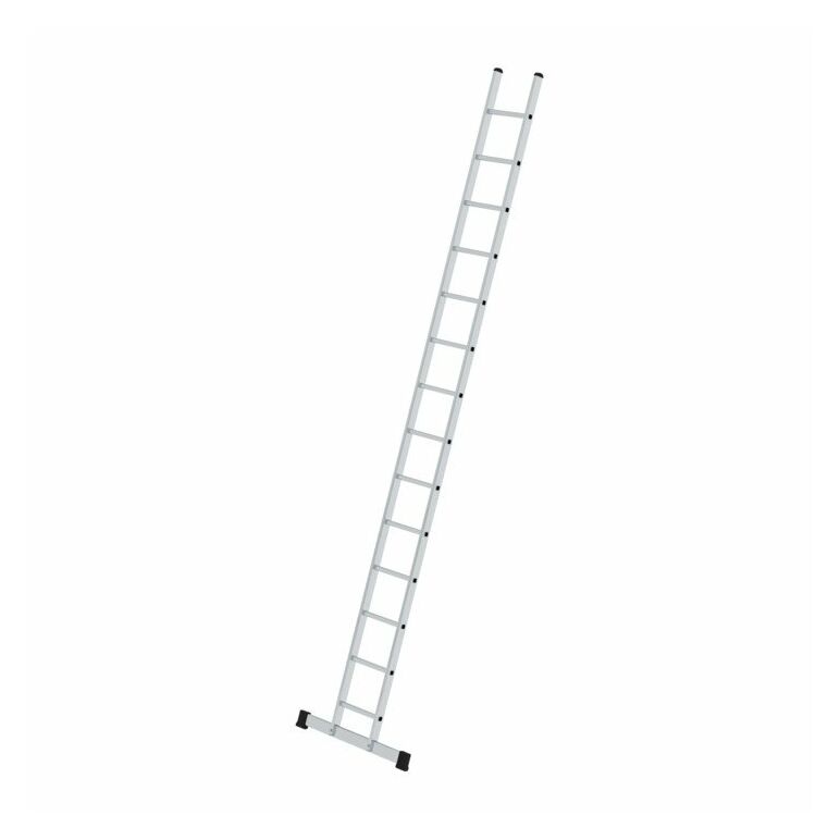- Kräftige Holmprofile Geriffelte Vierkantsprossen 30 x 30mm Rutschsichere nivello® -Leiterschuhe Rutschsichere nivello®-Leiterschuhe Sicherer Stand bei Anlegeleitern über 3,0m durch Standard-Traverse
