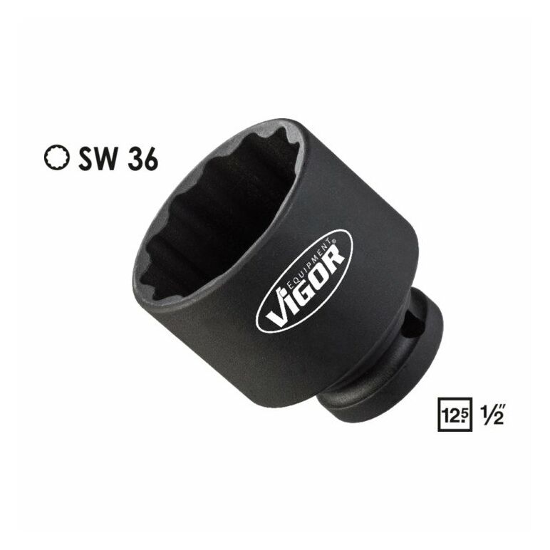 VIGOR Innenvierkant Antrieb 12,5 = 1/2 Zoll Kraft-Steckschlüssel-Einsatz, kurz, (Doppel-6kt.) V4478 Vierkant hohl 12,5 mm (1/2 Zoll) Außen-Sechskant Profil 36 Gesamtlänge: 50 mm